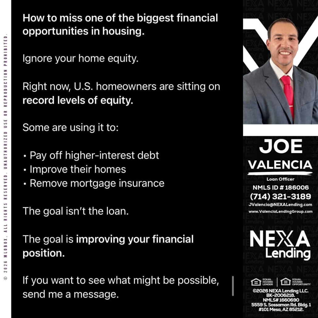 Hi, my name is Joe Valencia. I’m a Loan Officer with NEXA Mortgage, offering personalized mortgage solutions, fast customized quotes, great rates and service with integrity.