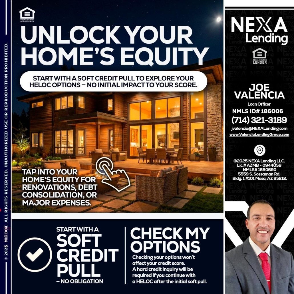 Hi, my name is Joe Valencia. I’m a Loan Officer with NEXA Mortgage, offering personalized mortgage solutions, fast customized quotes, great rates and service with integrity.
